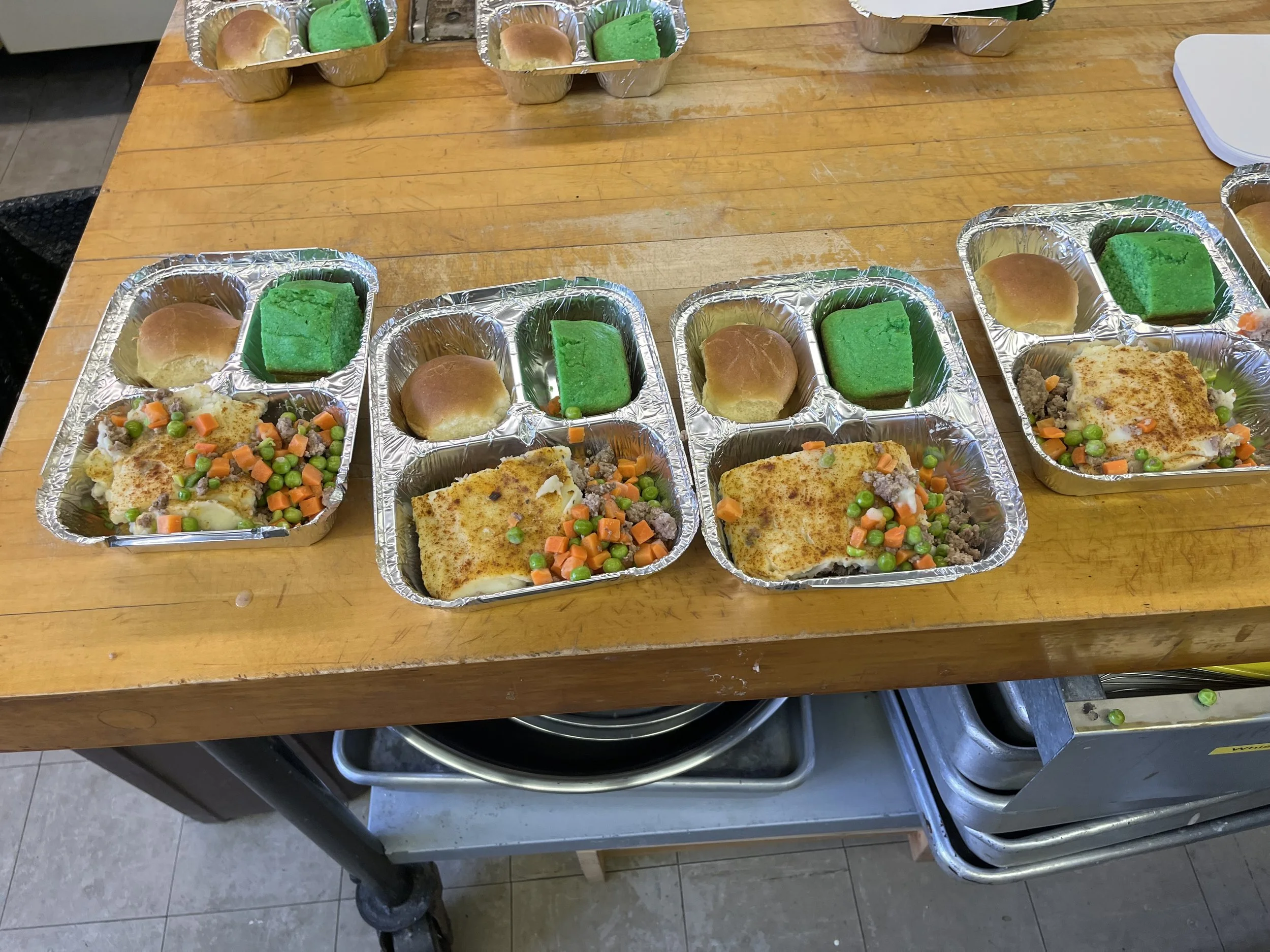 On Saturday, March 14, Saint Elizabeth Ann Seton held another successful Take-and-Eat event. This one had an Irish theme to celebrate Saint Patrick’s Day, and meals included shepherd’s pie and green cornbread. More than 70 people were served meals, including around 50 regulars.
